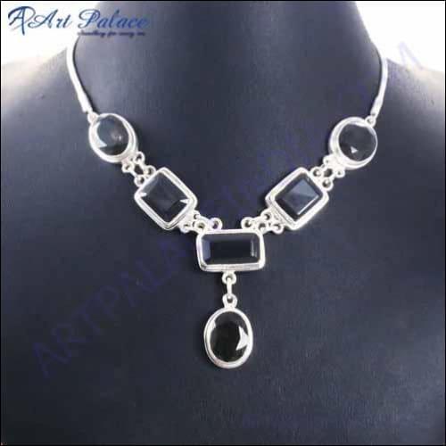 Introducing the Stylish Gemstone Silver Necklace, a stunning piece that adds a touch of elegance to any outfit. This fashionable necklace is designed to be versatile, making it suitable for various occasions, from casual outings to formal events. Crafted with precision by Art Palace, Jaipur, a company with a rich history in jewelry manufacturing since 1981, this necklace is a testament to quality and style.