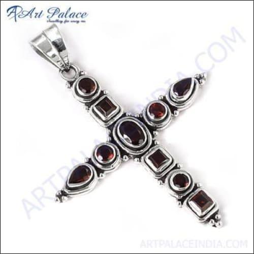 Stylish Multi-Garnet Gemstone Silver Cross Pendant Jewelry featuring vibrant garnet stones set in a silver cross design.
