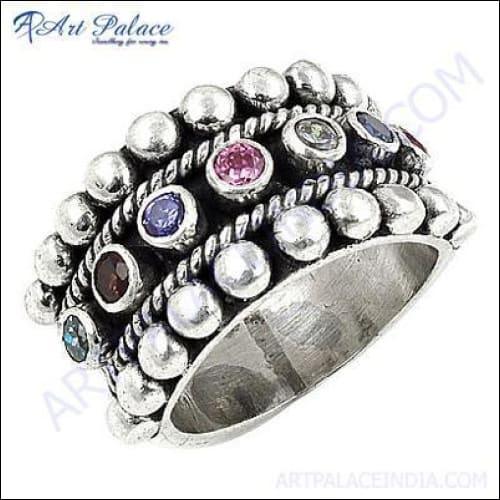 Stylish Multi-Gemstone Silver Ring featuring vibrant gemstones set in high-quality silver, perfect for any occasion.