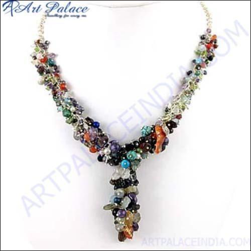 Introducing the Stylish Rocking Gemstone Necklace, a stunning piece of jewelry that is designed to elevate your everyday style. This necklace is not just an accessory; it is a statement piece that reflects your unique personality and taste. Crafted with precision and attention to detail, this necklace is perfect for any occasion, whether it's a casual outing or a formal event.