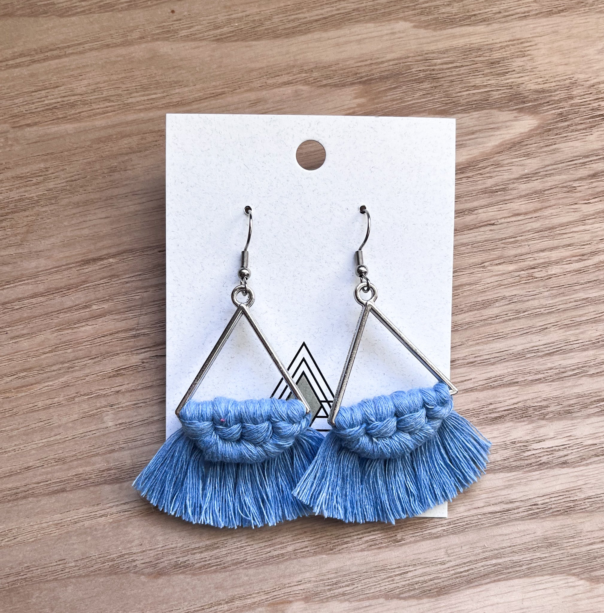 The vibrant blue color and triangle design make these accessories versatile enough to pair with a variety of outfits. Whether you're dressing up for a summer event or keeping it casual, the Summer Blue Triangles will complement your look beautifully. They can be worn with sundresses, shorts, or even swimwear, making them a must-have for your summer collection.