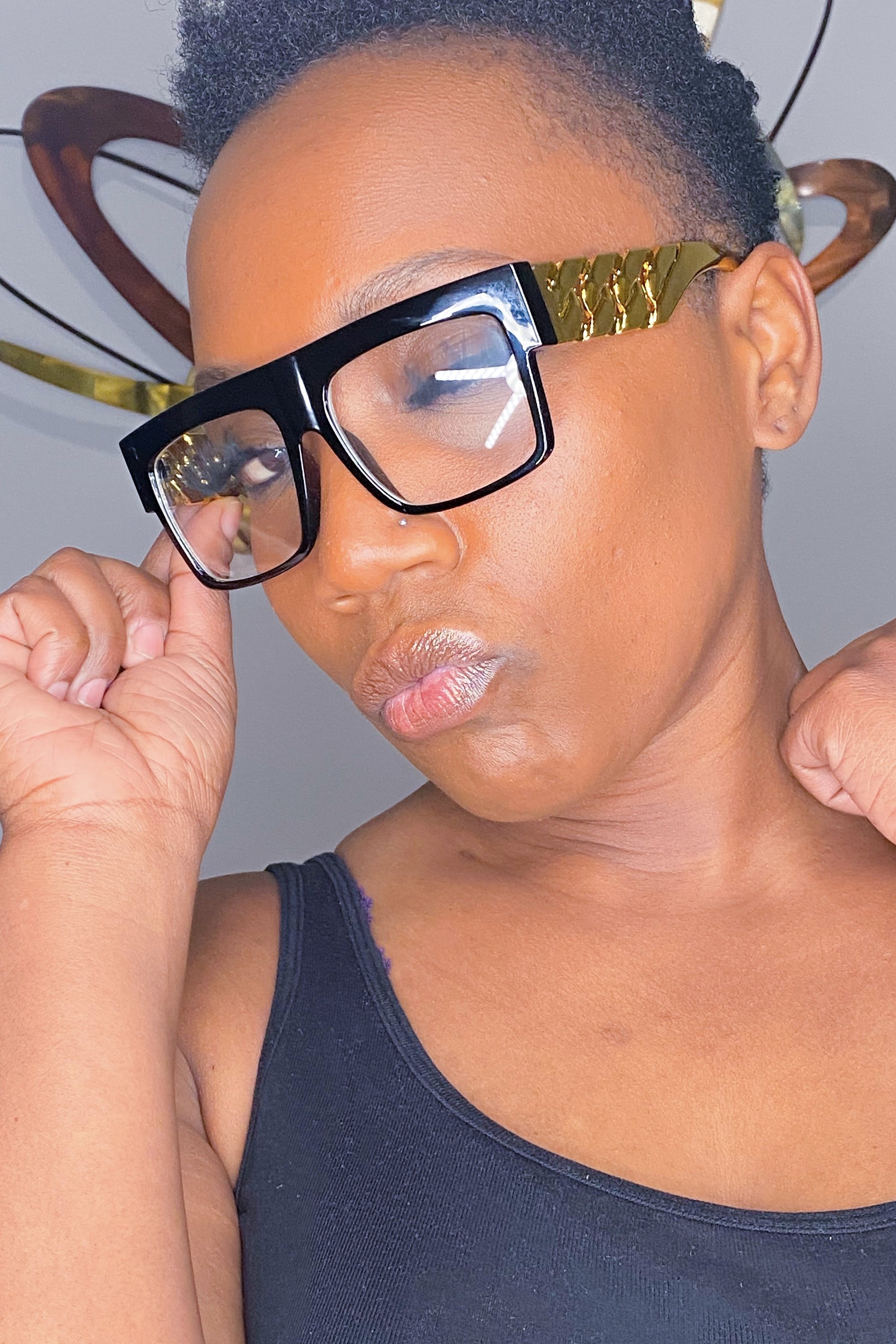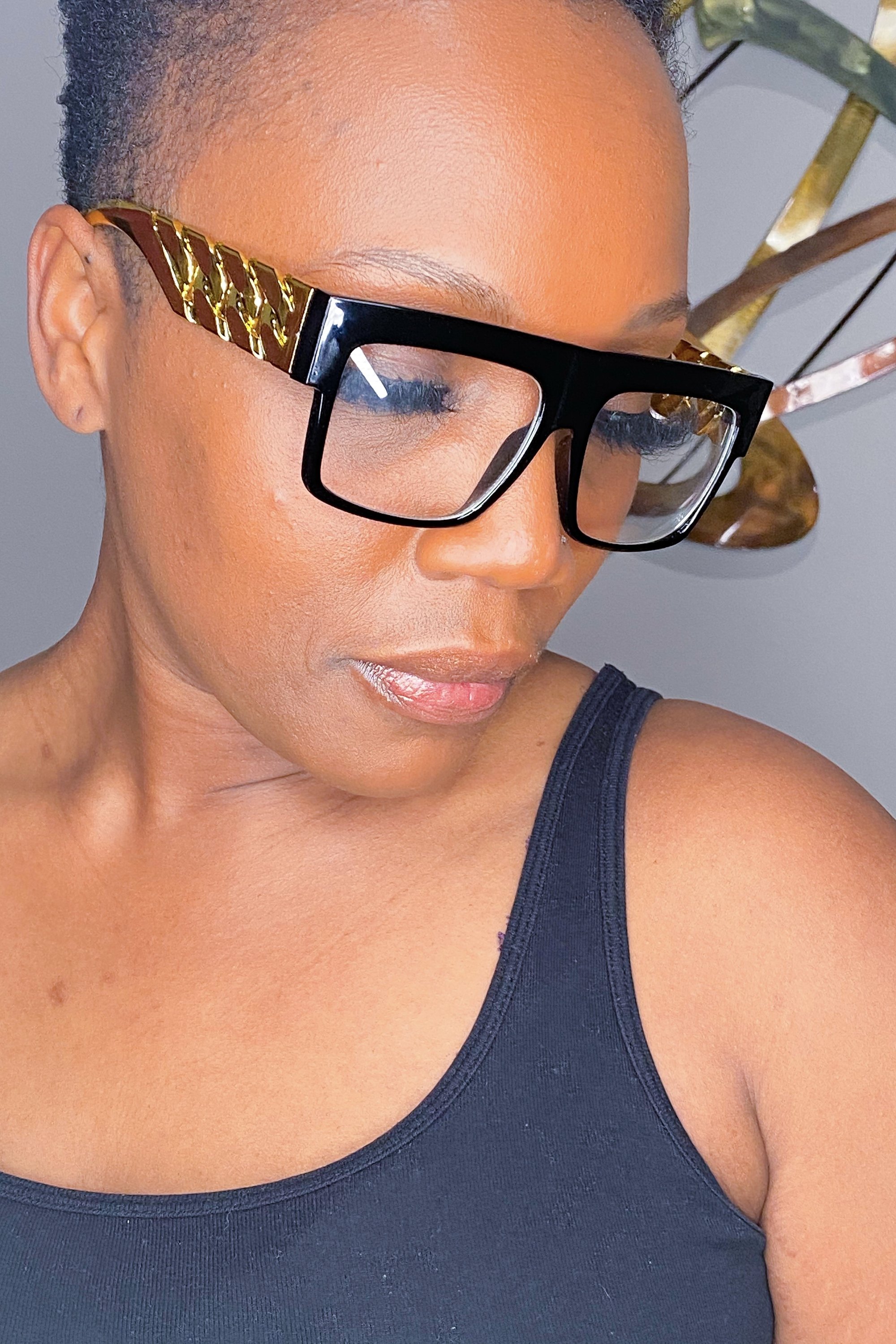 Introducing the Sunnies - Don’t Sweat The Technique, the perfect accessory to elevate your fashion game. These statement square brim glasses are designed to make a bold impression while providing comfort and style. Crafted from high-quality plastique, these sunnies are not only durable but also lightweight, making them ideal for all-day wear. Available in classic black and luxurious gold, they seamlessly blend with any outfit, whether you're dressing up for an event or keeping it casual.