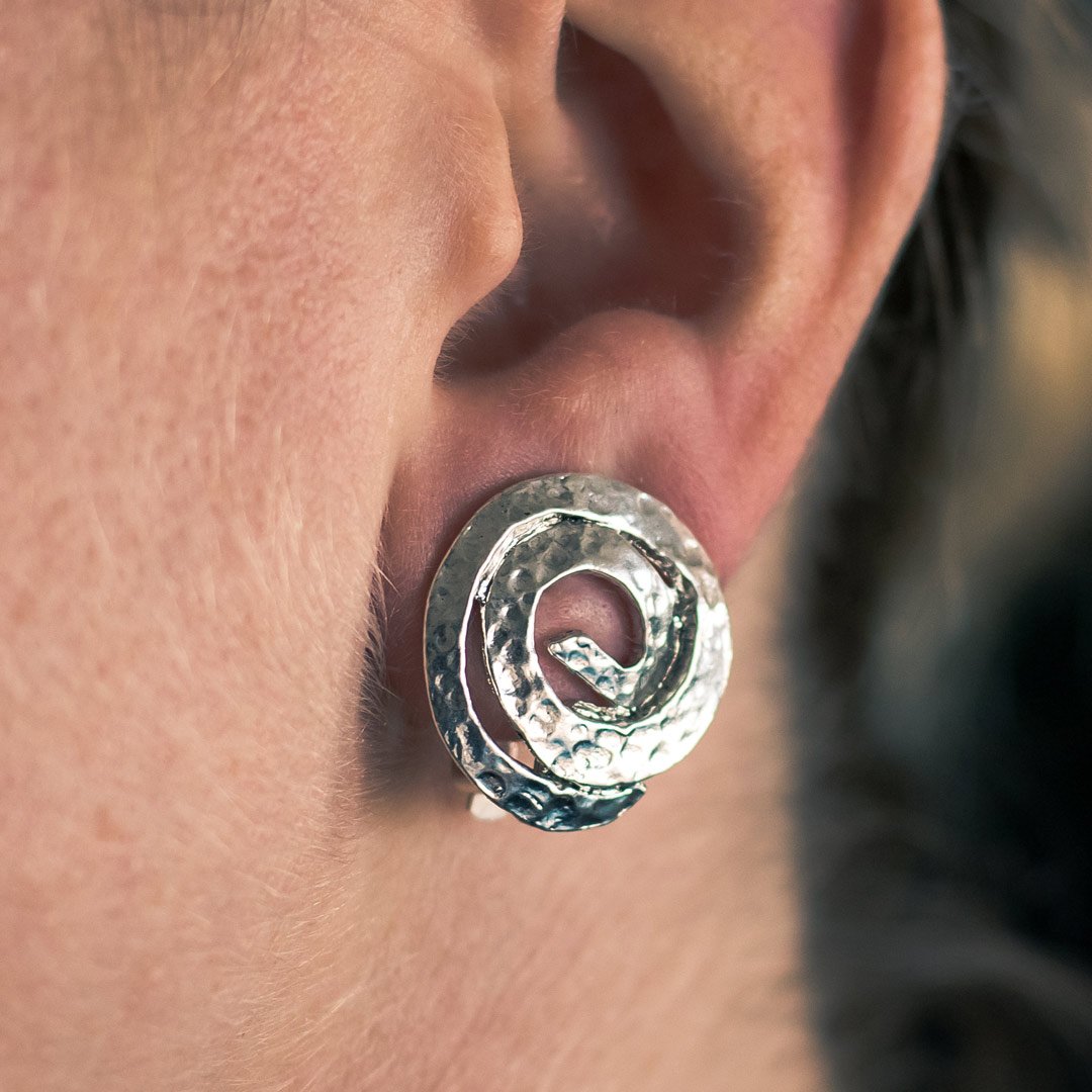 The Myriam swirl stud earrings feature a free-formed and hammered design that sets them apart from traditional stud earrings. This artistic approach not only adds texture but also creates a captivating visual effect that catches the light beautifully. If you believe that life's too short for boring jewelry, these earrings are the perfect solution to elevate your style.