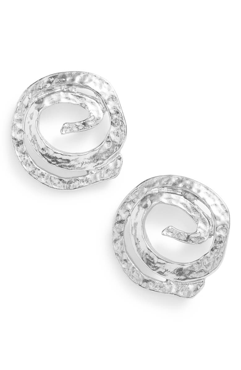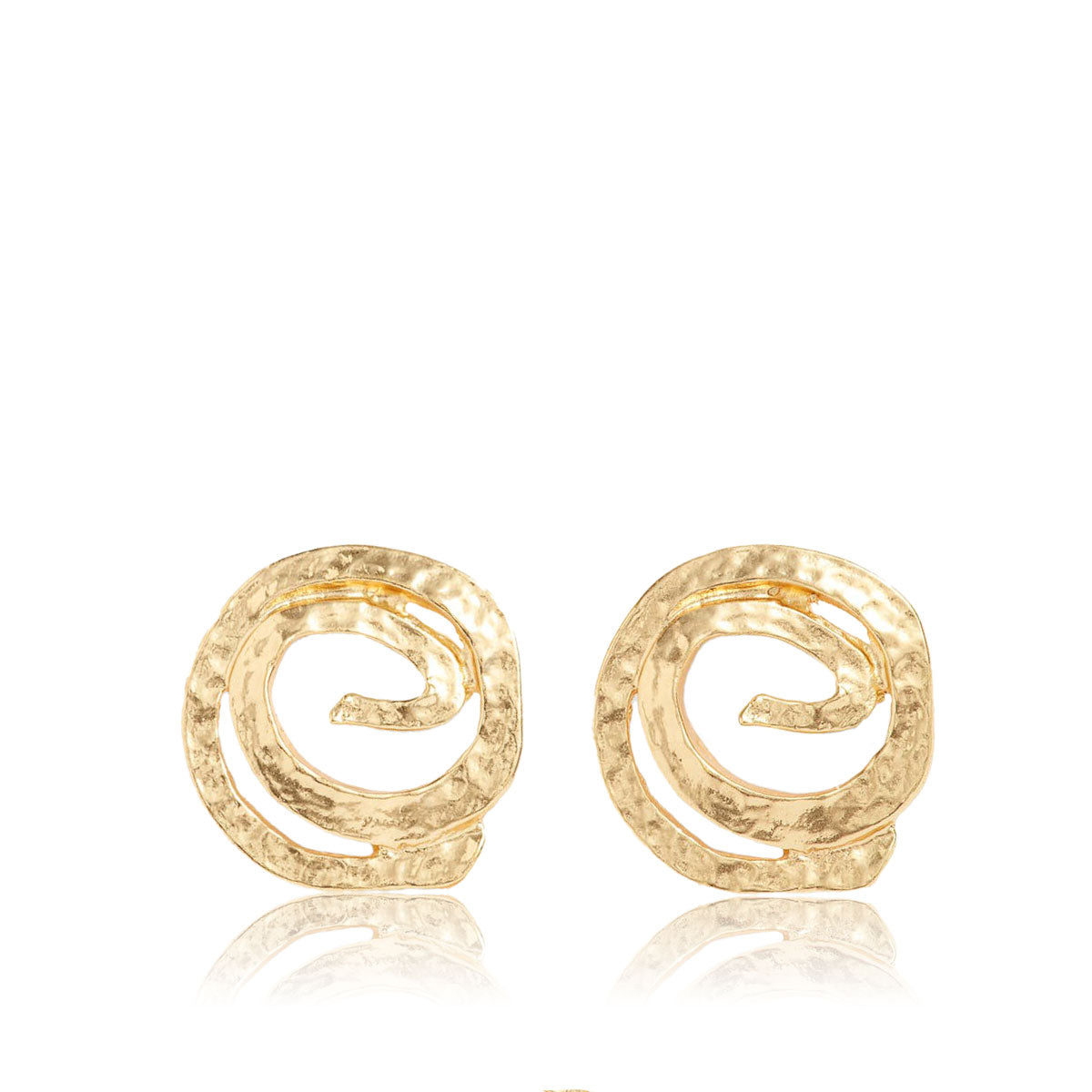 Myriam swirl stud earrings in gold, featuring a unique hammered design, perfect for everyday wear.