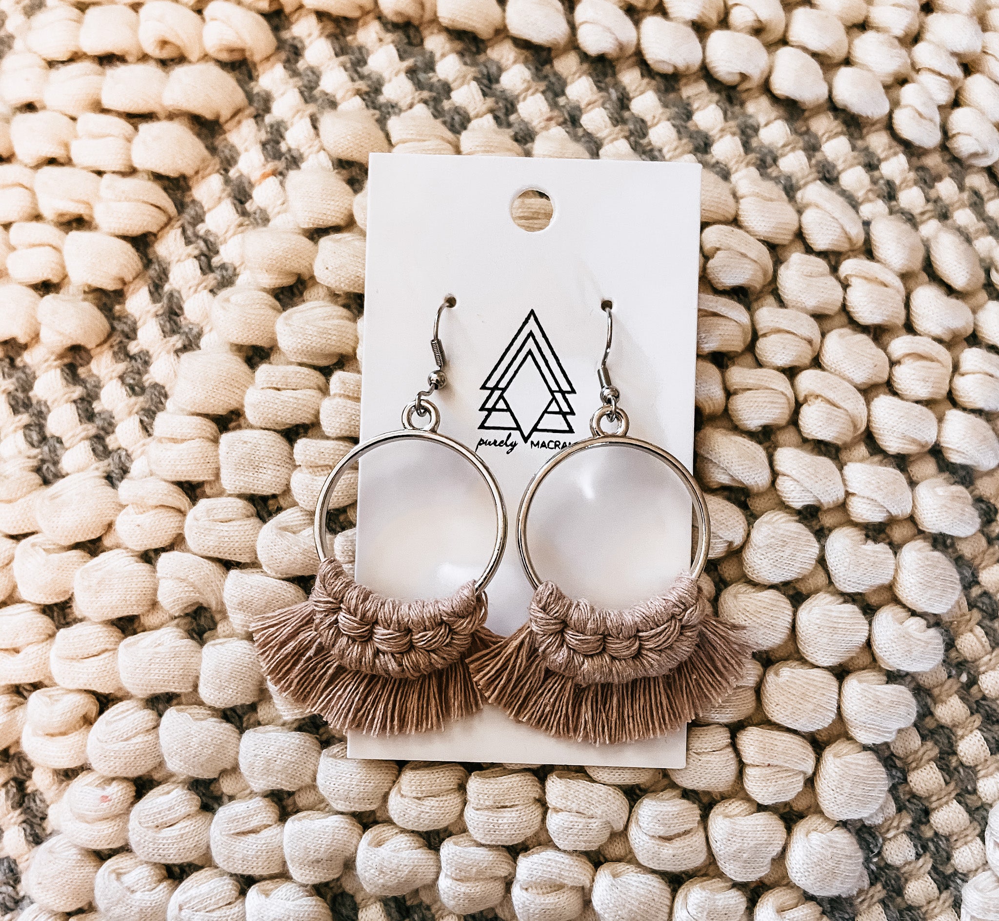 Our Tan Hoop Earrings are made with 100% macrame cotton, a material known for its durability and softness. This ensures that the earrings are not only beautiful but also long-lasting. Additionally, they are lead-free and nickel-free, making them a safe choice for those with sensitive skin. You can wear these earrings with confidence, knowing they won't irritate your ears.