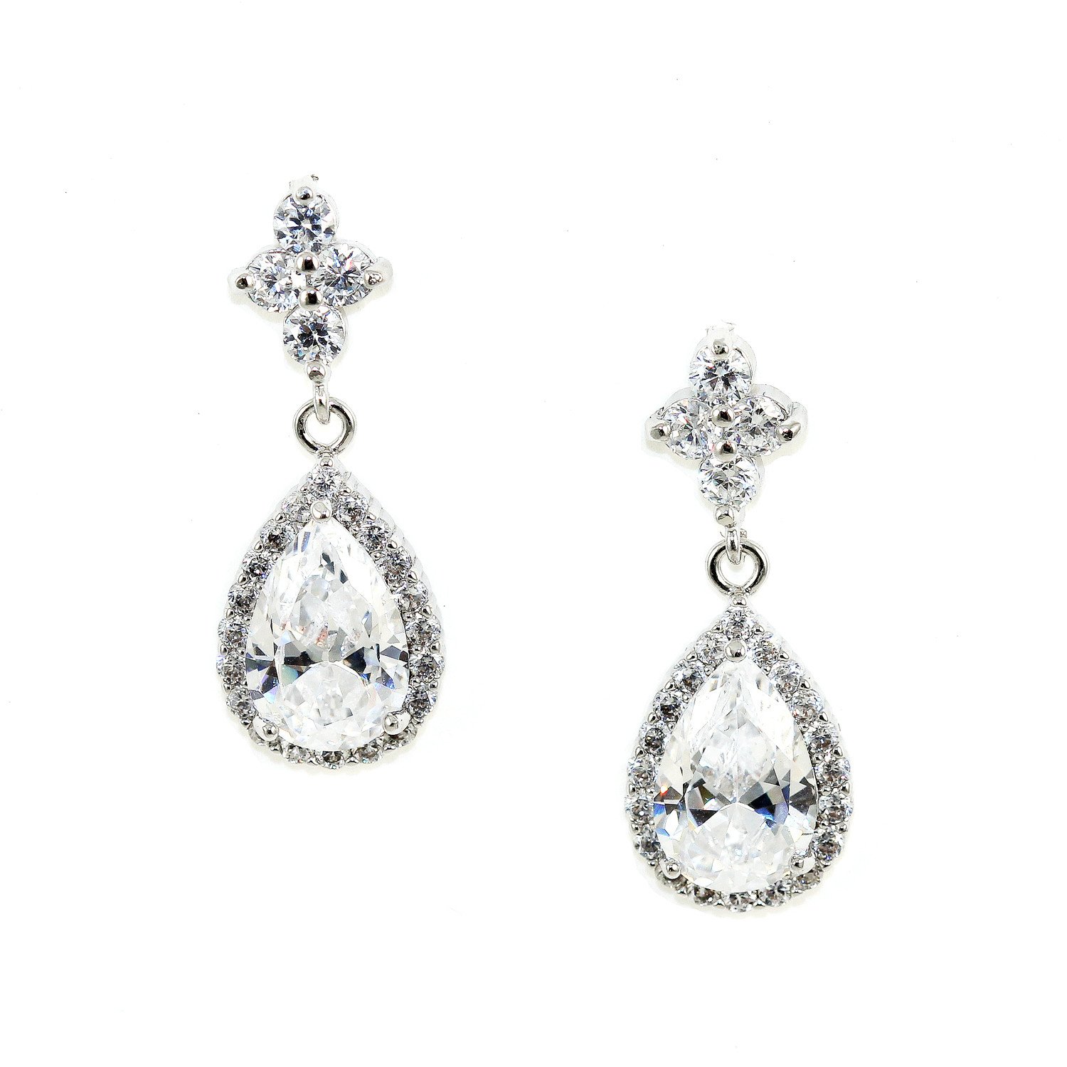 Crafted with care, these earrings are plated with 18k white gold over copper, providing a luxurious finish that resists tarnishing. This high-quality plating not only enhances the beauty of the earrings but also ensures their durability, allowing you to enjoy them for years to come. The use of cubic zirconia crystals adds to the overall sparkle and shine, making these earrings a true statement piece.