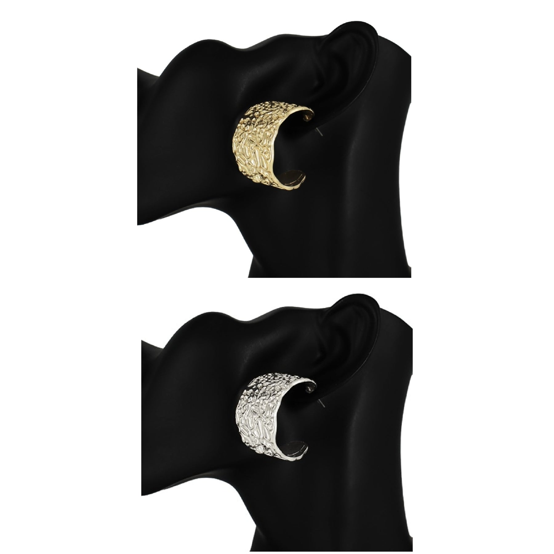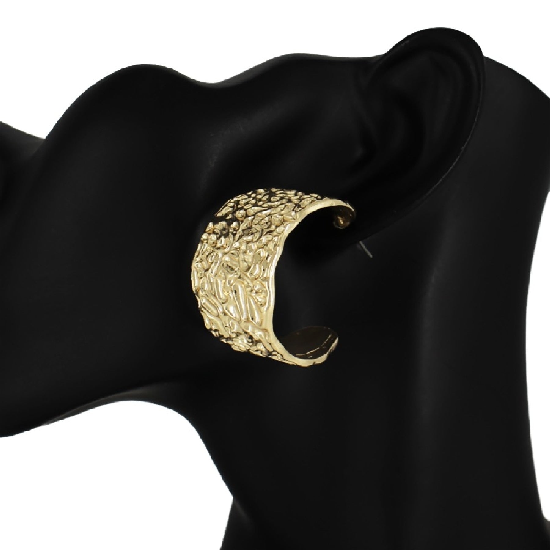 The textured metal finish of these hoop earrings adds a unique touch to your outfit, making them suitable for both casual and formal occasions. Whether you're dressing up for a night out or adding flair to your everyday look, these earrings are the perfect accessory to complement any ensemble.
