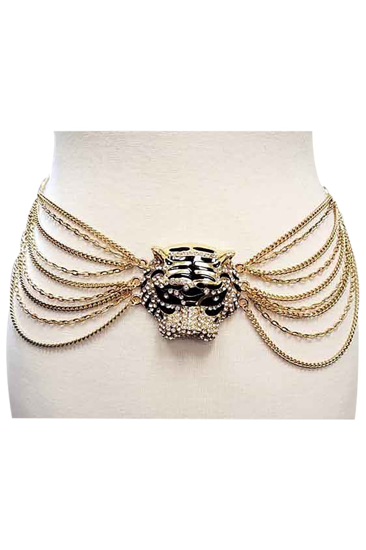 A stylish Tiger with Stone Layer Belt featuring a unique tiger design and stone embellishments, adjustable length with lobster claw clasp.