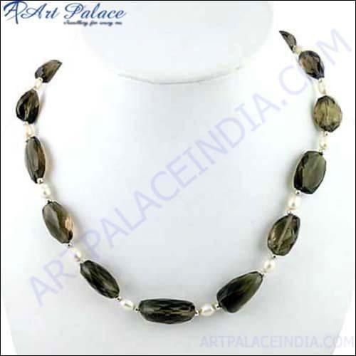 We use only the finest raw materials, which are carefully selected and tested for quality. Our manufacturing unit is equipped with modern technology and advanced machinery, allowing us to create jewelry pieces that are not only aesthetically pleasing but also durable and long-lasting. The Top Design Pearl and Smokey Quartz Necklace is a testament to our dedication to quality and artistry.
