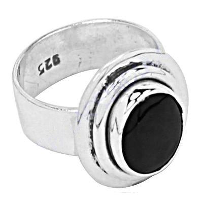 Traditional Black Onyx Gemstone Ring set in 925 Sterling Silver, showcasing its elegant design and deep black color.