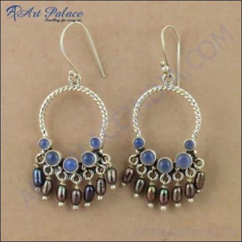 Dropship Traditional Blue Chalcedony & Brown Pearl Gemstone Silver Bali