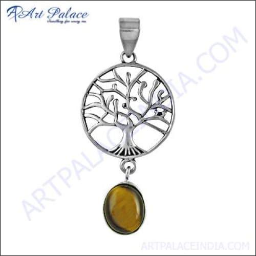 Dropship Tree of Life Tiger Eye Gemstone Silver Pendant Jewelry | Logo Pendants