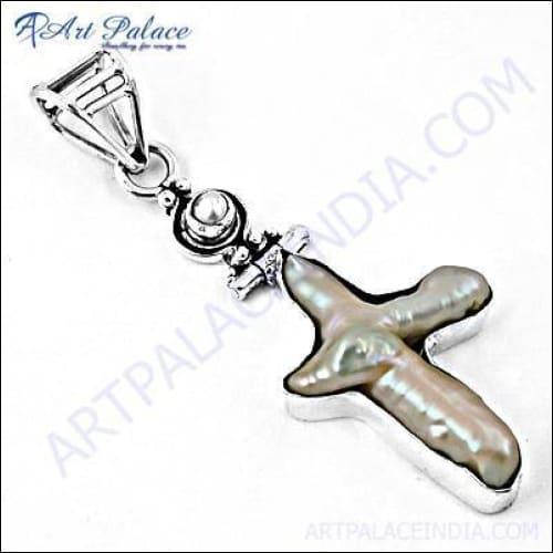 Introducing the Trendy Cross Style Silver Pendant with Pearl, a stunning piece of fashionable jewelry that embodies elegance and sophistication. This exquisite pendant is designed to make a statement, whether you're dressing up for a special occasion or adding a touch of glamour to your everyday outfit. Crafted with precision and care, this pendant showcases a unique cross design that is both modern and timeless.