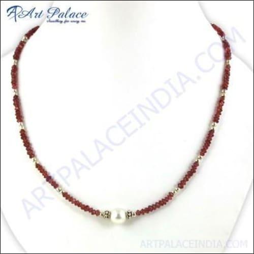 Introducing the Trendy Garnet and Pearl Silver Necklace, a stunning piece of jewelry that embodies elegance and sophistication. This exquisite necklace is designed to elevate your style, making it the perfect accessory for any occasion, whether it's a formal event or a casual outing. Crafted with meticulous attention to detail, this necklace features a beautiful combination of garnet and pearl gemstones that create a striking visual appeal.