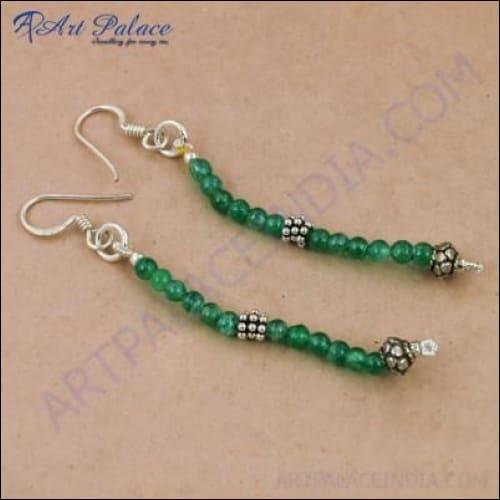 Introducing our Trendy Green Aventurine Gemstone Silver Beaded Earrings, a stunning accessory that combines elegance and style. These earrings are designed to enhance your look, making them a perfect addition to any jewelry collection. Crafted with care, they feature beautiful green aventurine gemstones that are known for their calming properties and aesthetic appeal.