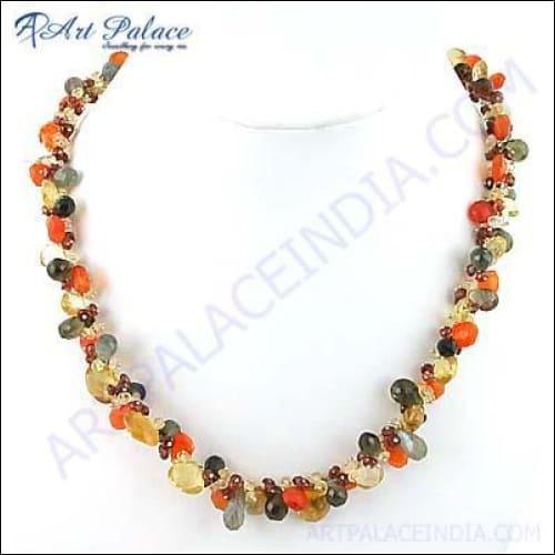 Introducing the Trendy Multi-Stone Silver Necklace, a stunning piece designed for those with a passion for fashion. Made by Art Palace in Jaipur, Rajasthan, this necklace is a true statement piece that combines elegance with a modern twist.