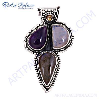 Experience the beauty and elegance of our Trendy Silver Pendant with Amethyst, Citrine, Labradorite, and Rainbow stones. Add this stunning piece to your jewelry collection today and enjoy the compliments that come your way!