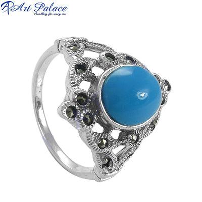 The Turquoise Ring Marcasite and Synthetic Turquoise 925 Silver Ring is a stunning piece of jewelry that combines elegance and artistry. Crafted by Art Palace, Jaipur, a renowned manufacturer and exporter since 1981, this ring showcases the beauty of synthetic turquoise and the brilliance of marcasite, making it a must-have accessory for any jewelry lover.