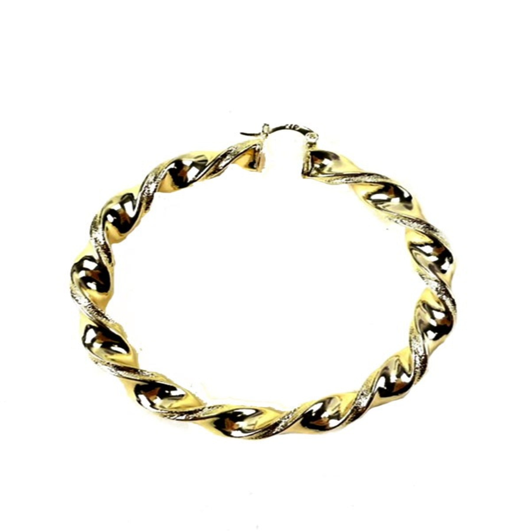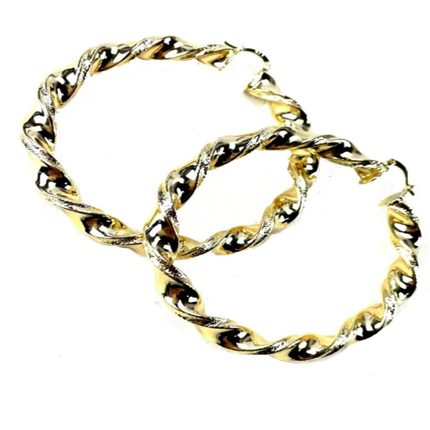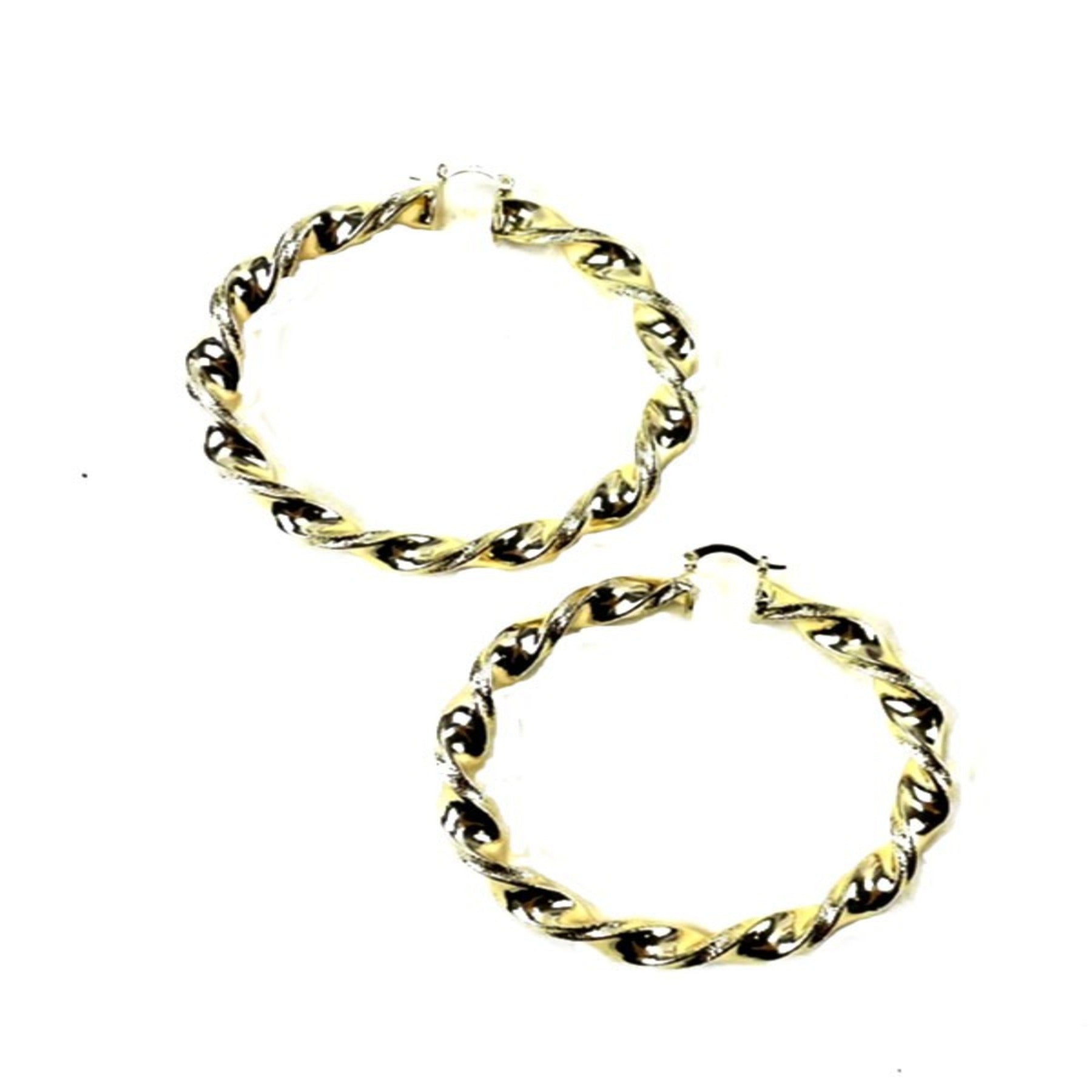 The Twist Hoop Earrings feature a unique twist design that adds a modern touch to the classic hoop style. Measuring 3 inches in diameter, they are the ideal size to make a statement without being overwhelming. Whether you're dressing up for a night out or adding a touch of glamour to your everyday look, these earrings are versatile enough to suit any occasion.