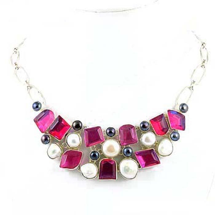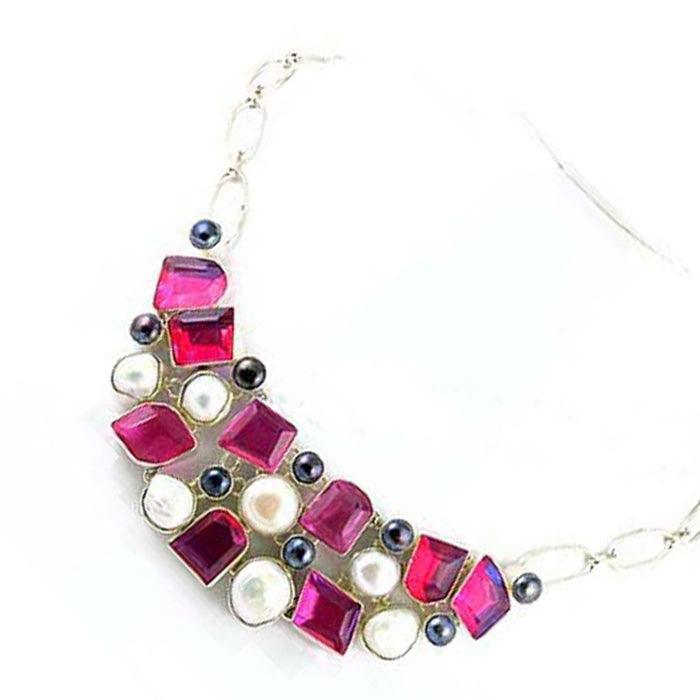 Introducing the Valuable Pearl & Pink Glass Stone 925 Silver Necklace, a magnificent piece of jewelry that embodies elegance and sophistication. This exquisite necklace is a proud creation of Art Palace, Jaipur, a brand renowned for its commitment to quality and timeless designs since 1981. Each piece is crafted with precision, ensuring that it not only looks stunning but also stands the test of time.