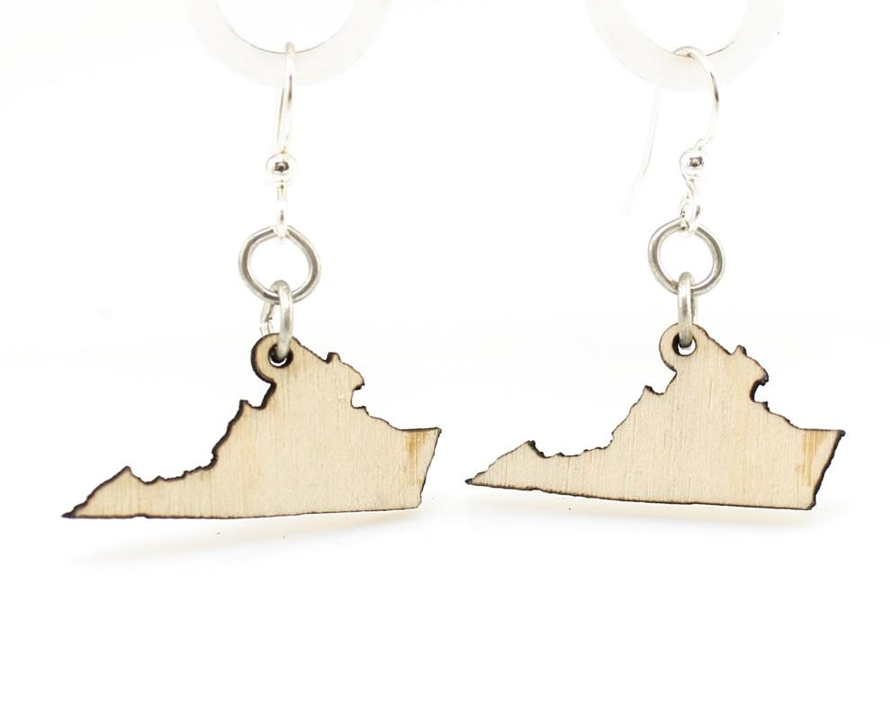 Virginia State Earrings made from natural wood, featuring a lightweight design and hypoallergenic silver-finished ear wires.