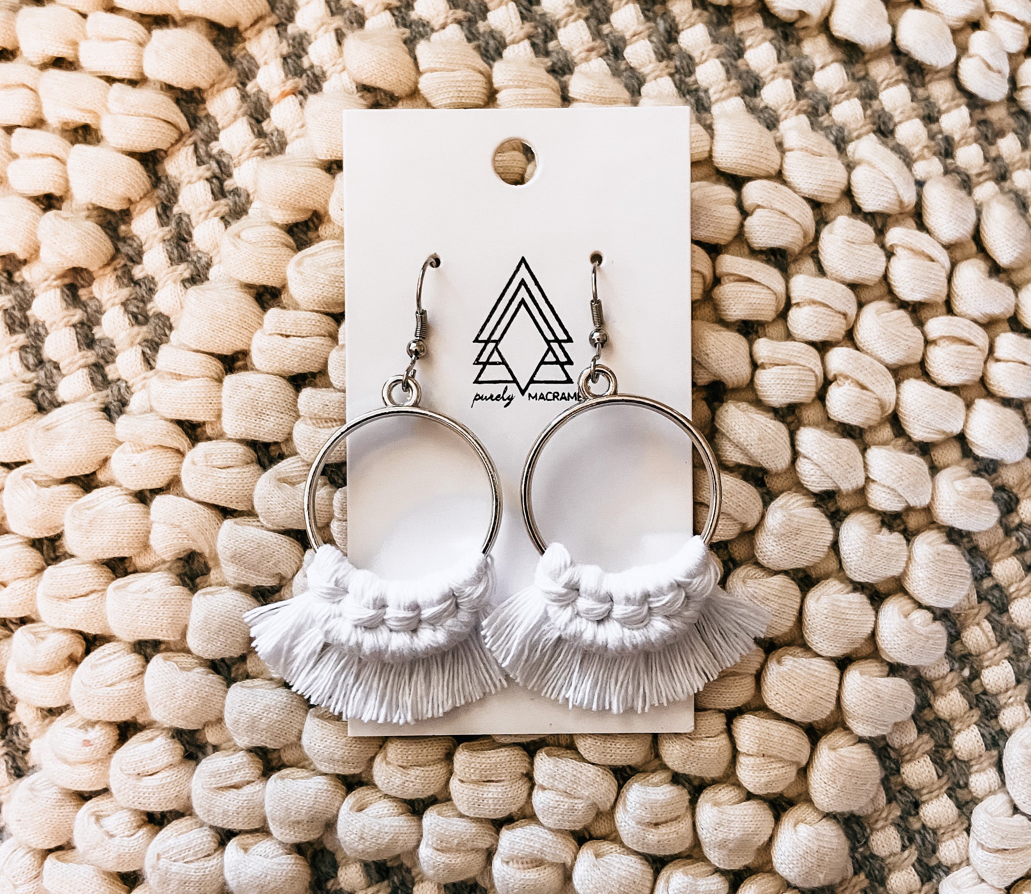 Introducing our stunning White Hoop Earrings, crafted from 100% macrame cotton. These earrings are not only fashionable but also designed with your comfort in mind. Their lightweight nature ensures that you can wear them all day without any discomfort. Whether you're dressing up for a special occasion or looking for a chic accessory for your everyday outfit, these earrings are the perfect choice.