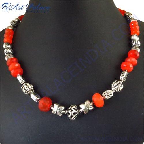 Introducing the Women's Deep Dark Red Onyx Necklace, a truly exquisite piece that exudes timeless elegance. Crafted with utmost precision by Art Palace, Jaipur, this necklace showcases the finest craftsmanship and attention to detail. The deep dark red onyx stone is not just a beautiful accessory; it is a statement of sophistication and style that every woman should possess.