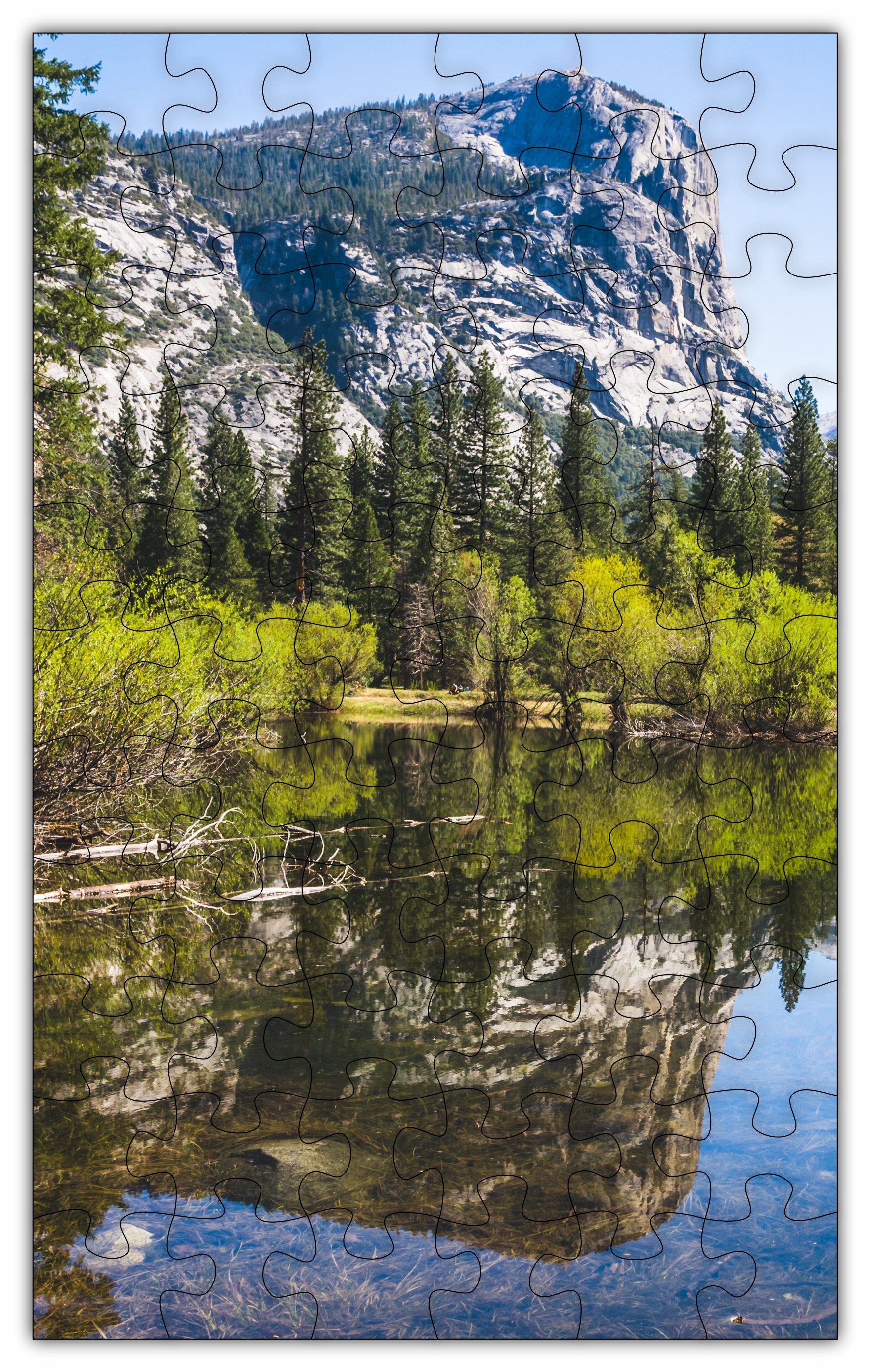 Discover the stunning Yosemite Mirror Lake Puzzle, a beautifully crafted 66-piece puzzle that captures the breathtaking scenery of Yosemite National Park. Made in the U.S.A, this puzzle is designed not only for enjoyment but also for display once completed. With dimensions of 5.4" x 8.8", it is the perfect size to frame and showcase your accomplishment.
