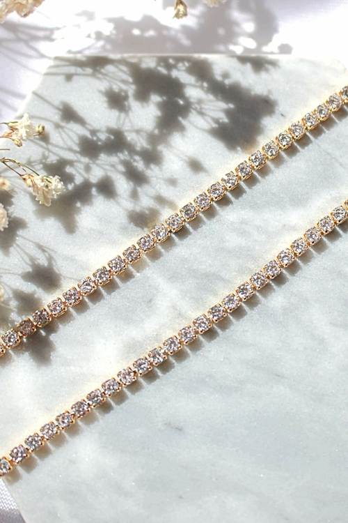 Tennis choker necklace made with clear cubic zirconia inlays.