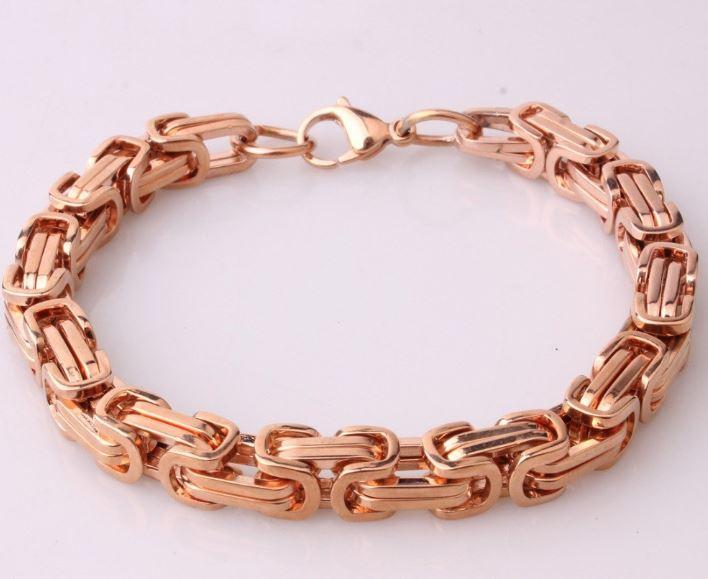 In summary, the 8 MM Rose Plated 24" Solid Byzantine Link Chain by Bling Master is a perfect blend of style, durability, and elegance. With its solid stainless steel construction, various plating options, and matching bracelet, it is designed to cater to all your fashion needs. Elevate your jewelry game with this exquisite chain that promises to be a cherished piece for years to come.