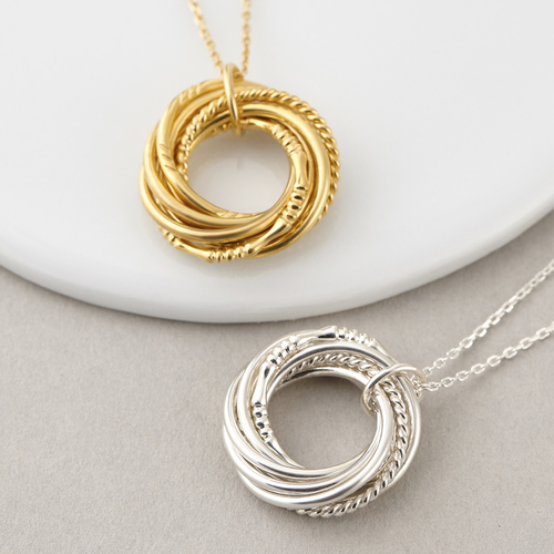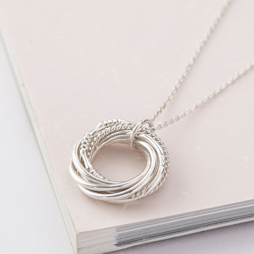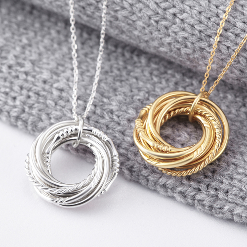 This necklace is a perfect gift for that very special 80th birthday. Each of the silver rings representing and celebrating each decade. Along with birthstones of your choice, this eternity necklace is a great gift for Mother's Day or any special occasion.