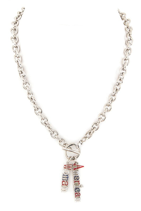 Elegant American Woman Double Pendant Necklace with toggle closure, showcasing a stylish design suitable for various occasions.