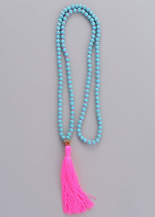 Dropship Boho Tassel Necklace 6MM Stone Knotted Nepal Charm