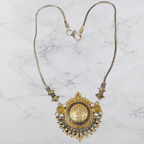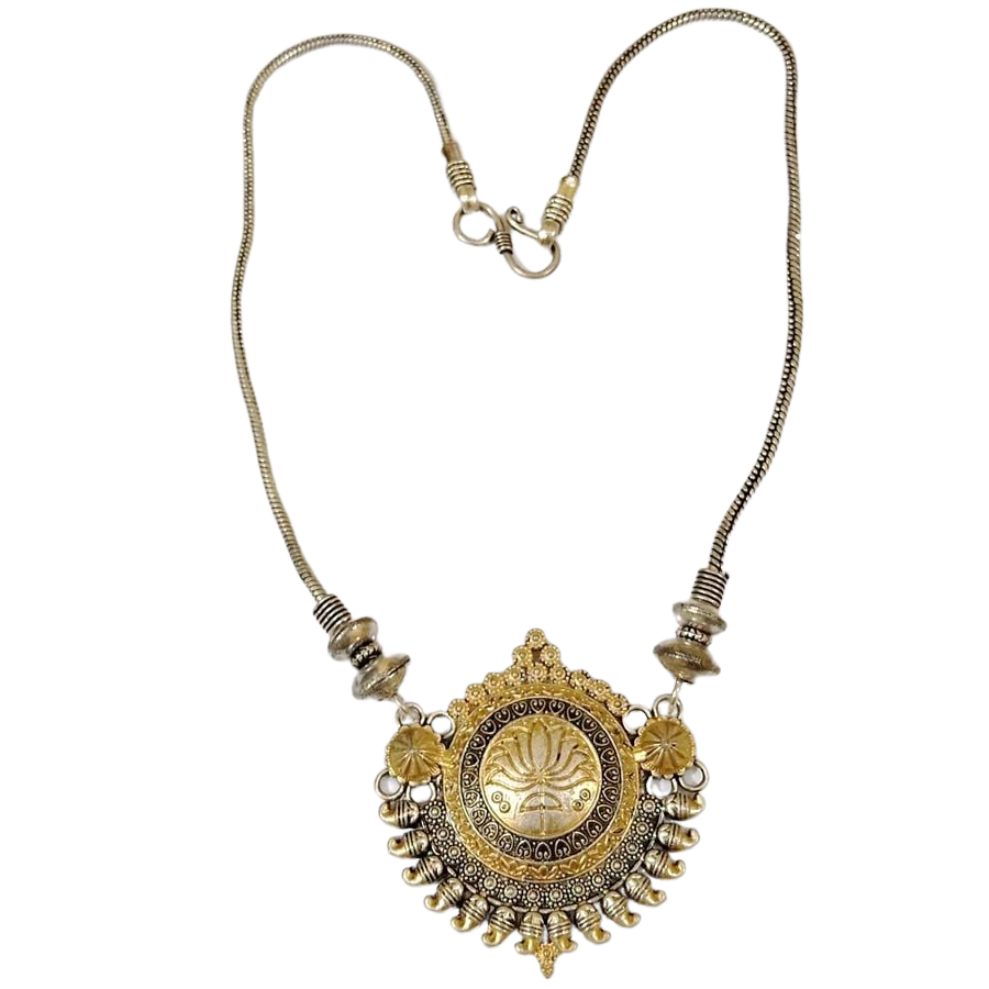 The Bohotusk Oxidised Silver Bronze Horn Shield Pendant Necklace is a unique and stylish accessory that combines elegance with durability. Crafted from high-quality GS Oxidised German Silver, this necklace is designed to withstand the test of time without tarnishing, making it a perfect addition to your jewelry collection.