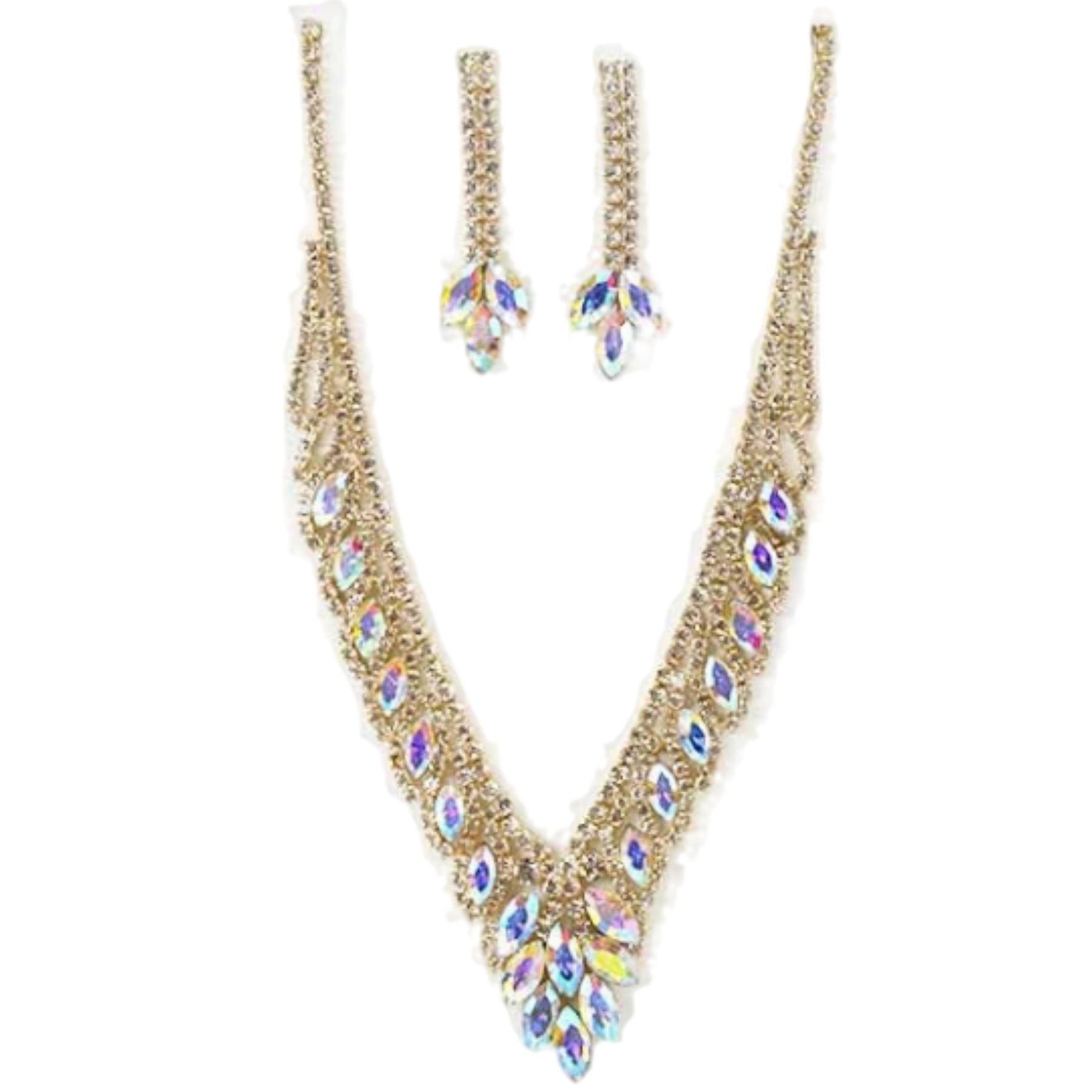 The matching earrings are designed to complement the necklace perfectly. Each earring features a drop length of approximately 1.75 inches, providing a graceful movement that catches the light beautifully. The post back design ensures they are easy to wear and stay securely in place throughout the day.