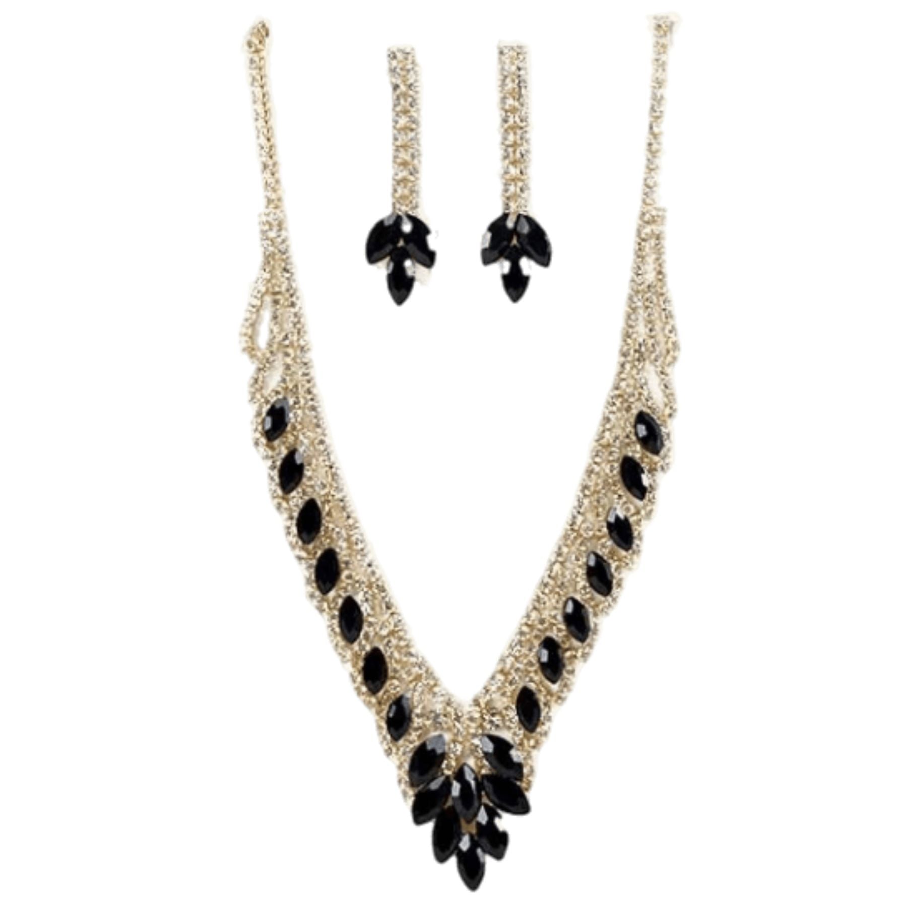 Includes matching drop earrings