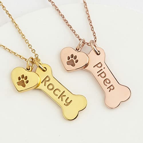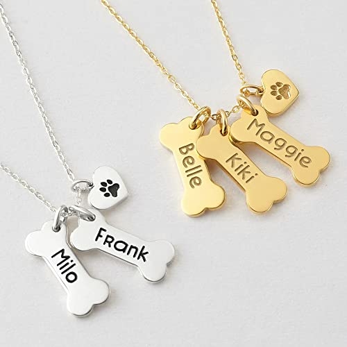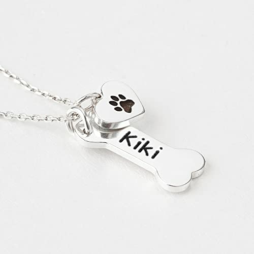 Our dog memorial necklace is an elegant design that is fantastic for dog owners. Crafted from high quality 925 sterling silver, you can have this pet necklace engraved with everything from a pet's name or breed, to birthday or anything your heart desires. Goes with cute little heart charms with paws, pet bone jewelry like this makes for lovely gifts for friends and loved ones as well.