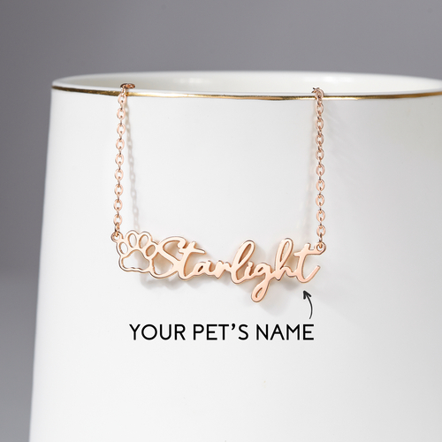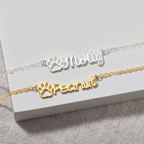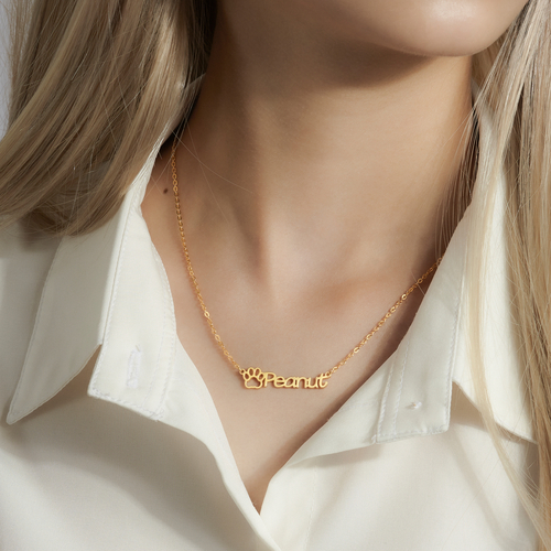Keep your pet close to your heart by this necklace. You can personalize your per name next to a paw shape on this piece, make it a cute necklace for any pet lover.