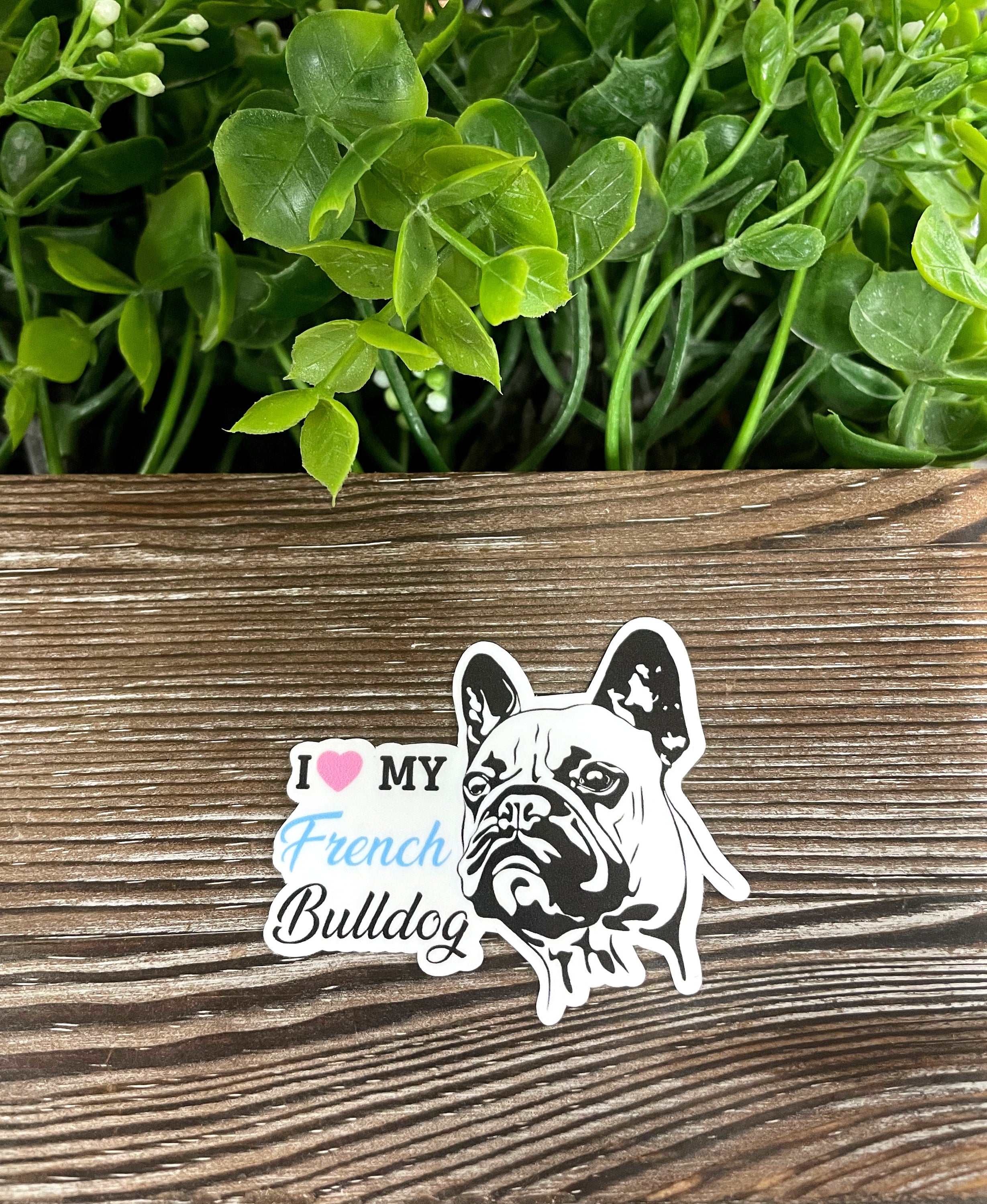 Dropship I Love my French Bulldog Sticker, Pet Breed |Sticker or Magnet