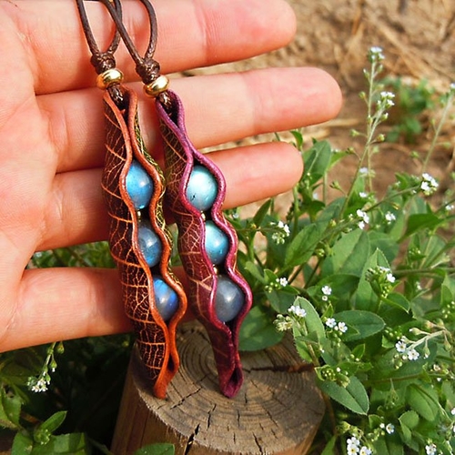 The leather is dyed by hand,the leaf texture is made by real leaf,and each leaf only used once,so the texture is different of each necklace.