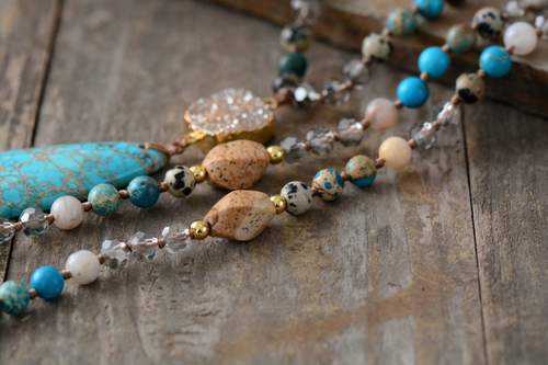 Dropship Long Necklace Natural Stones Crystals Druzy