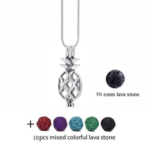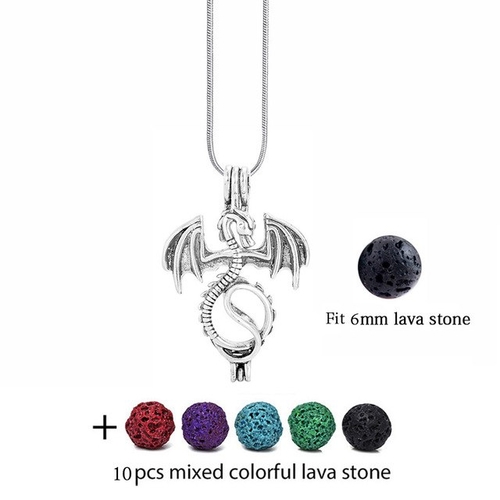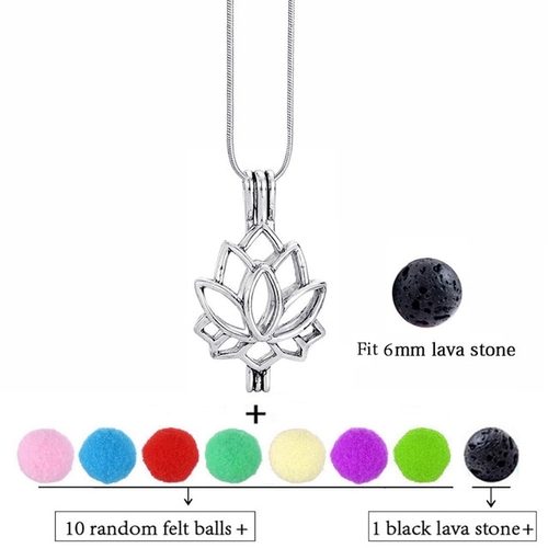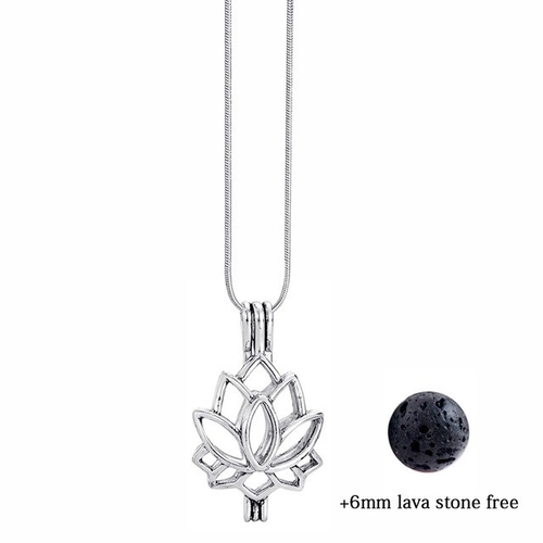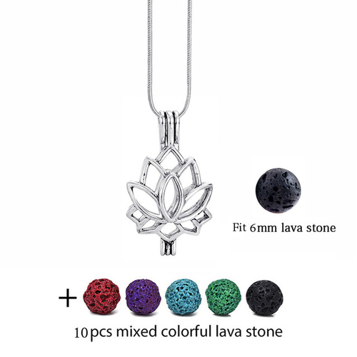 Dropship Lotus Flower Lava Stone Necklace DIY Cabochon