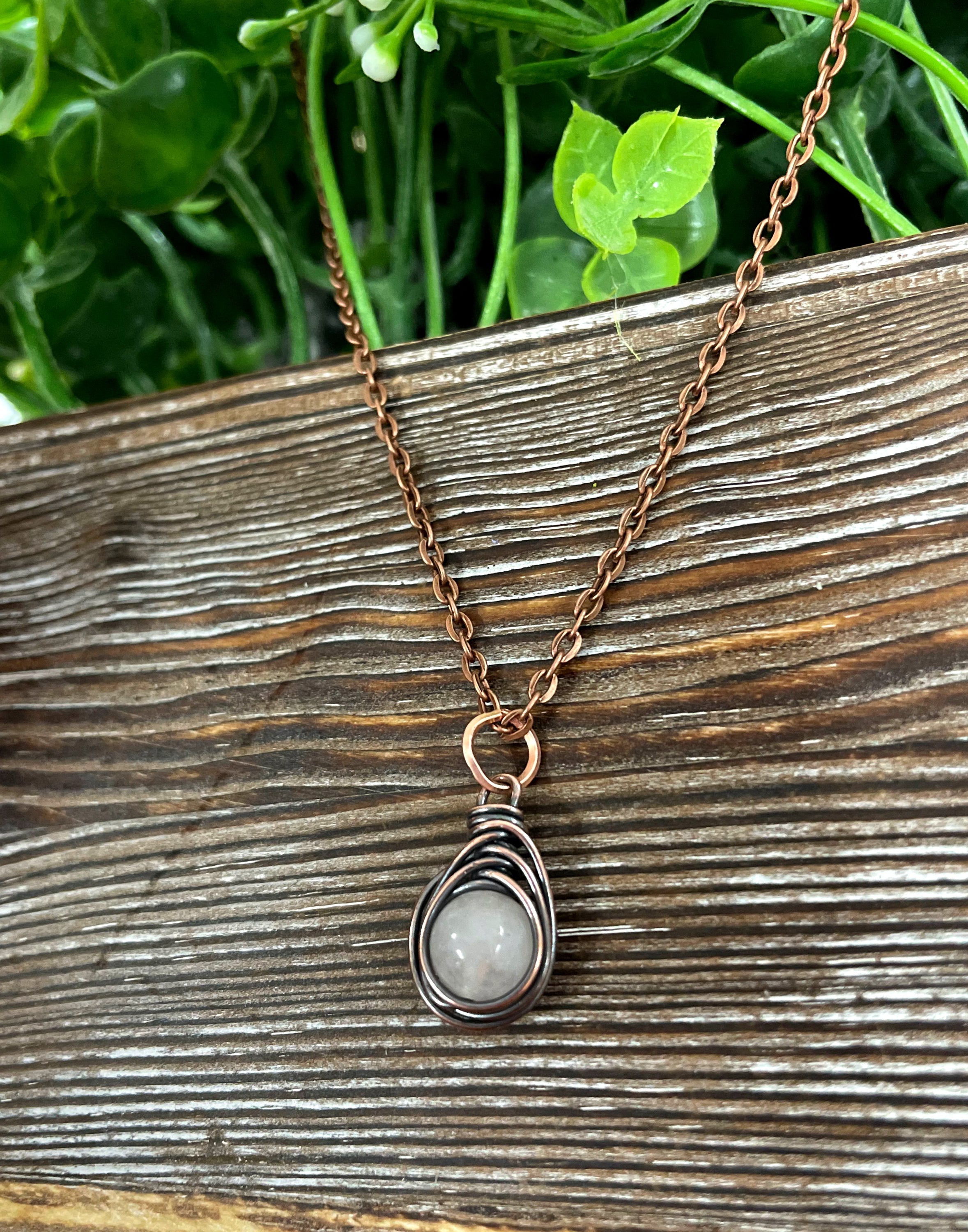 The mushroom shape of the pendant adds a playful element to your jewelry collection. This design is not only eye-catching but also symbolizes growth and renewal, making it a perfect gift for someone special or a delightful treat for yourself. The oxidized copper wire wrapping gives the pendant an antique look, making it a standout piece that can be worn on various occasions.