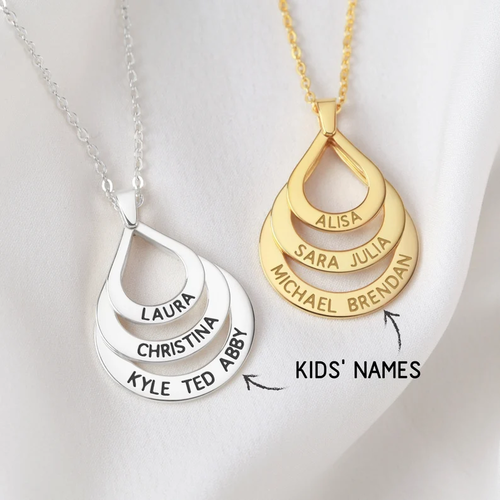 Showing your never ending love to your mother or grandma with this 925 sterling silver necklace. Come with 1-3 drop-shaped charms, this piece of jewelry can hold up to 6 kids' names.This is a special personalized gift for mom to add more love on her daily outfit and special occasion.