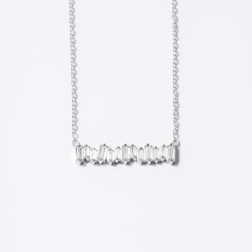 This our rectangular stone necklace with 13 zigzag arranged stones, creating a vivid effect, catching sparkling light, the jewelry helps you look more sparkling every day when worn alone or in layers.
