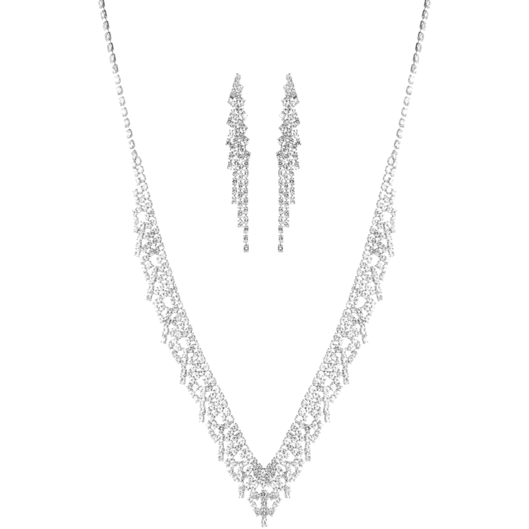 Introducing our exquisite Rhinestone Bridal Necklace Set, a perfect accessory for brides looking to add a touch of elegance to their wedding day ensemble. This stunning set features a beautifully crafted necklace and matching earrings, designed to complement any bridal gown. The necklace measures approximately 14 inches in length, making it an ideal fit for various necklines. With its sparkling rhinestones, this set will catch the light beautifully, ensuring you shine on your special day.