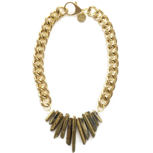 Dropship Rocked Up Crystal Quartz Necklace - Gold