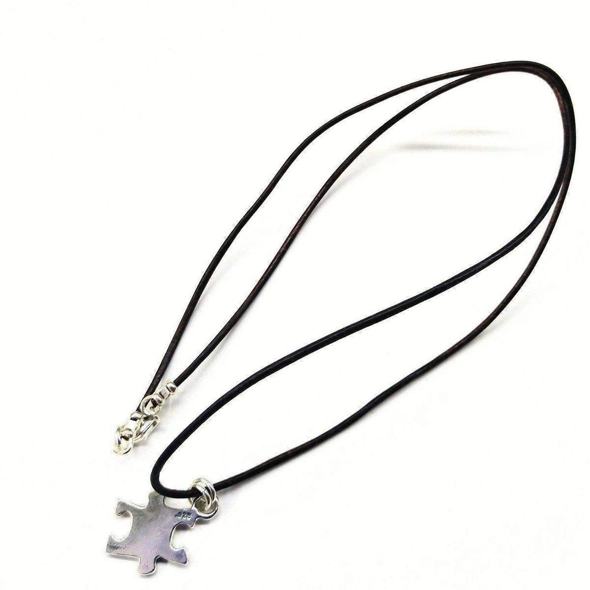 Dropship Sterling Silver Autism Awareness Puzzle Piece Leather Necklace
