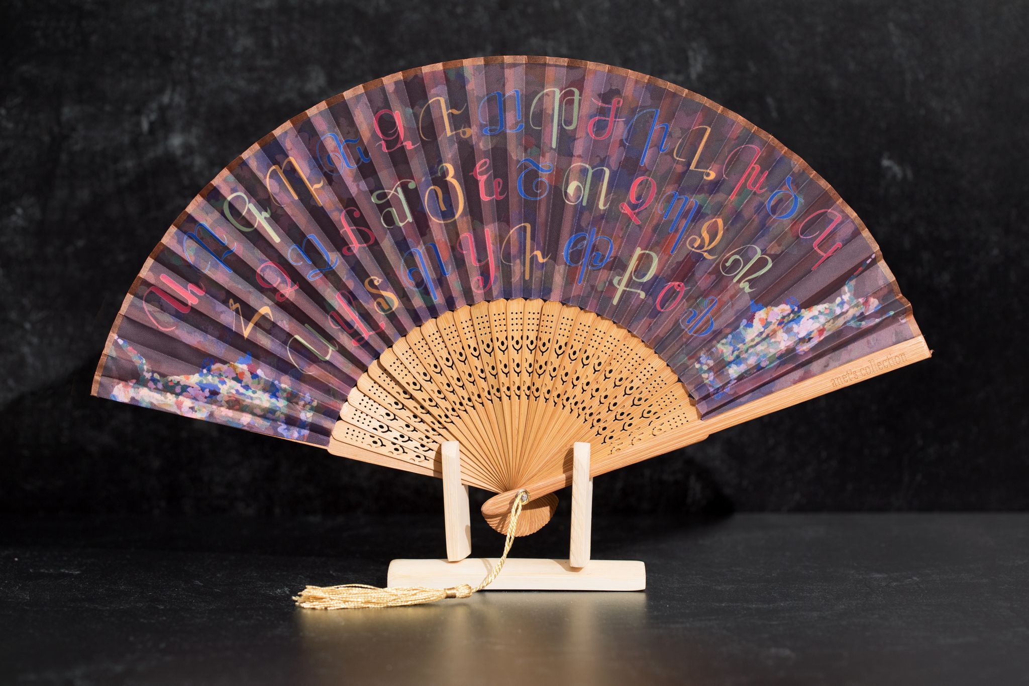 In summary, the Armenian Alphabet & Dancers Hand Fan is more than just a cooling accessory; it is a celebration of culture and artistry. Whether you choose to use it as a hand fan or display it on your vanity, it is sure to enhance any space with its beauty and charm.