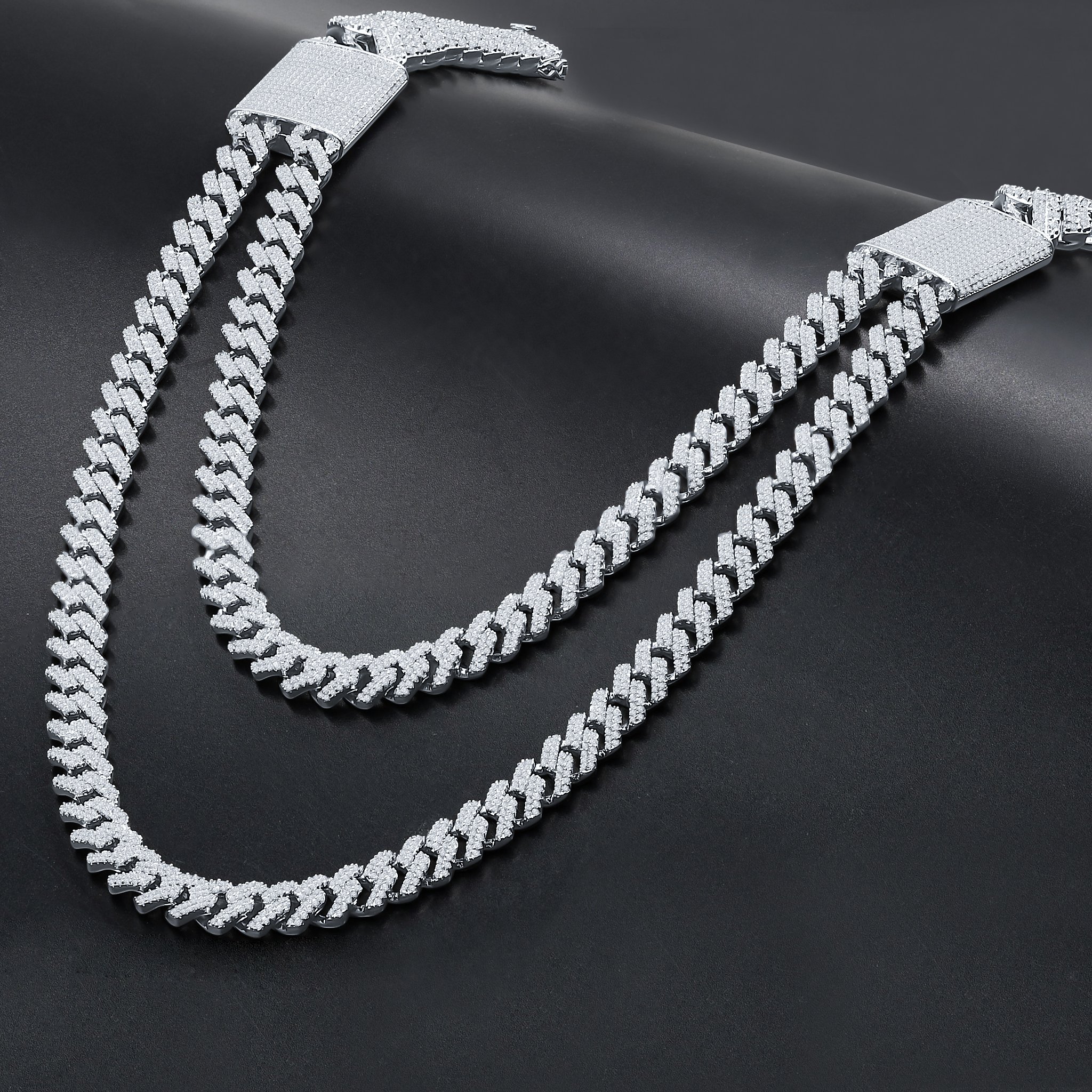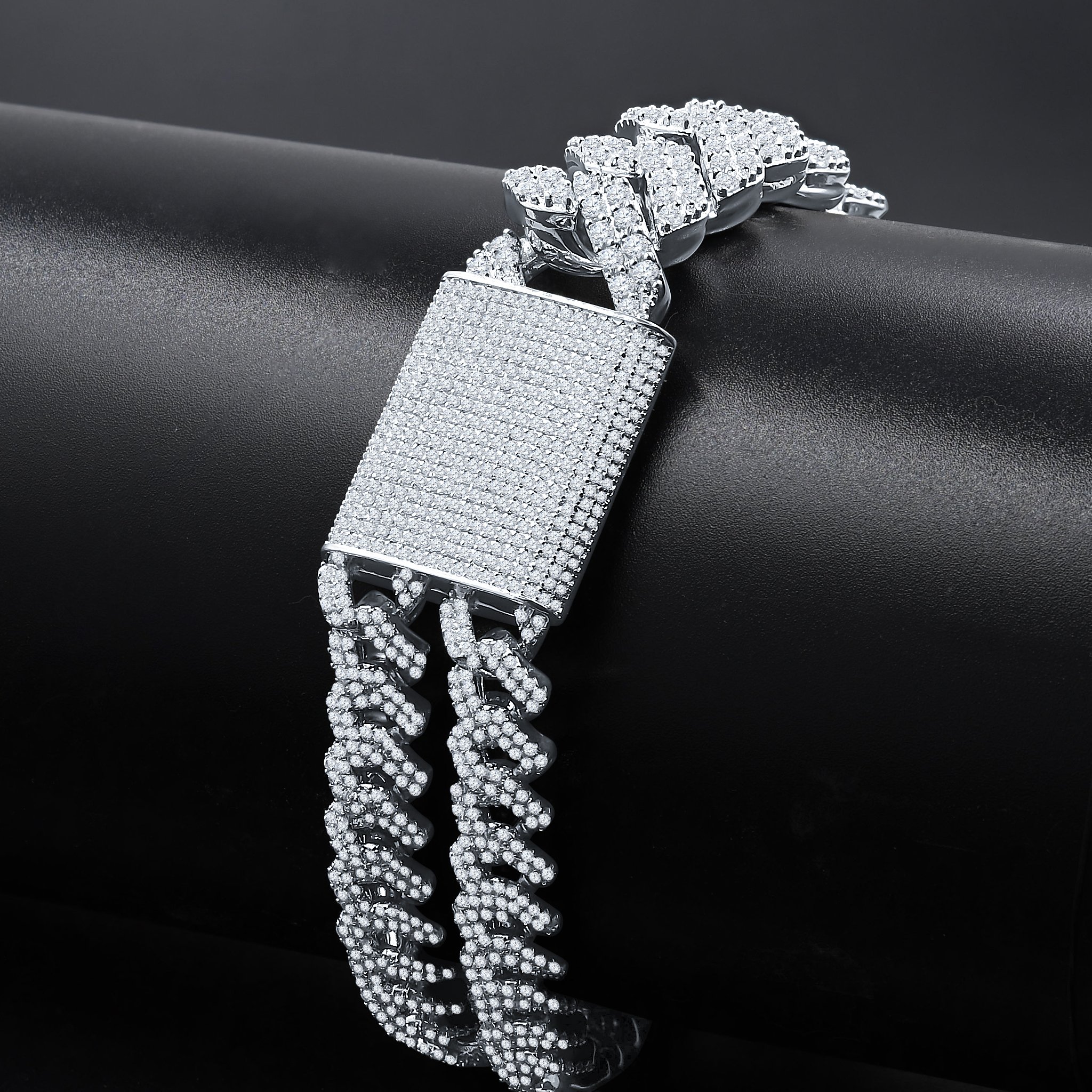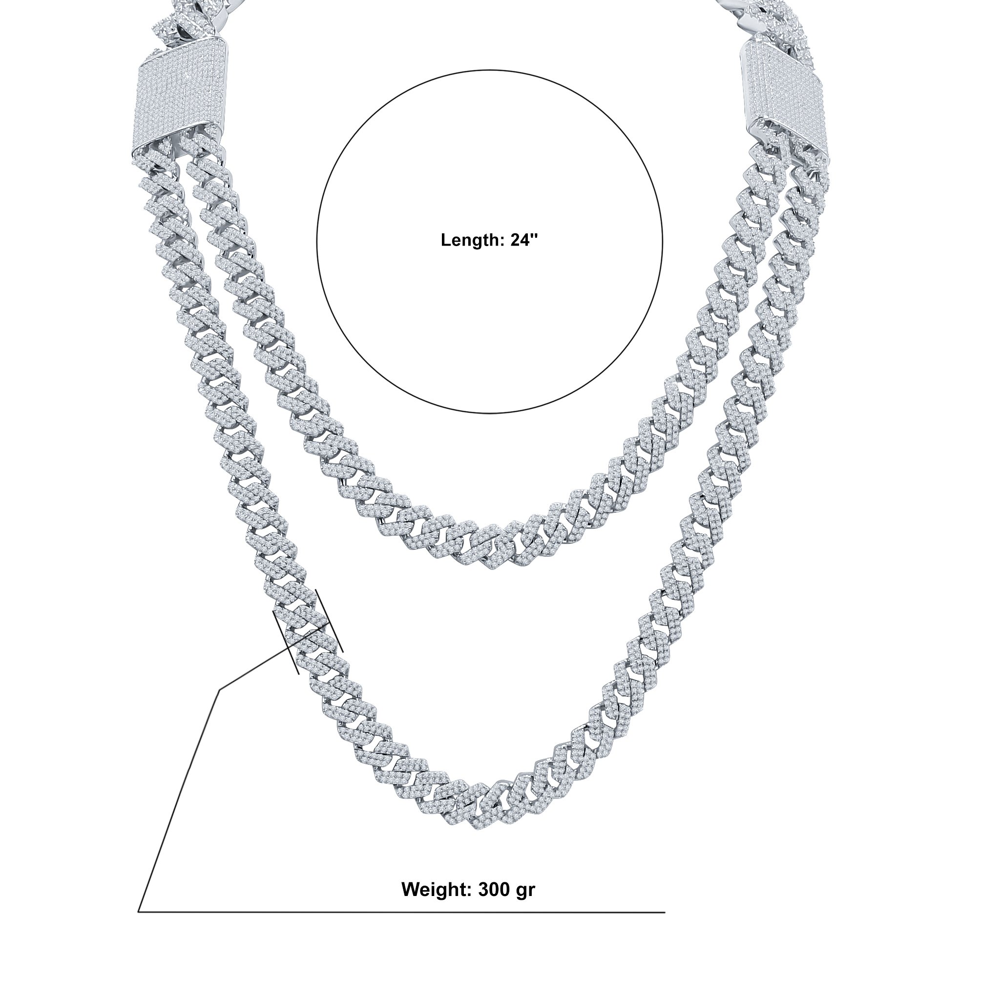 Each BRAVURA Cuban Chain is prong set by hand, ensuring that every Grade AAA Cubic Zirconia stone is perfectly placed for maximum brilliance. The craftsmanship involved in creating this chain is evident in its intricate design and luxurious finish. The use of high-quality materials, including durable brass (copper) metal, guarantees that this chain will withstand the test of time while maintaining its stunning appearance.
